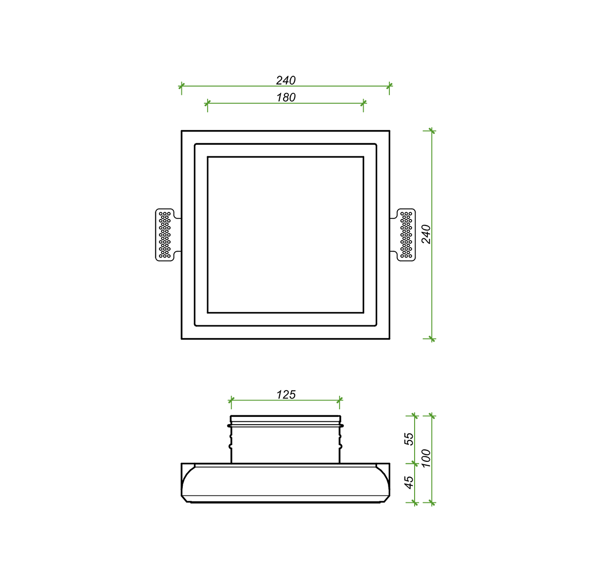 Габаритный размер (мм) - 240 х 240 х h100